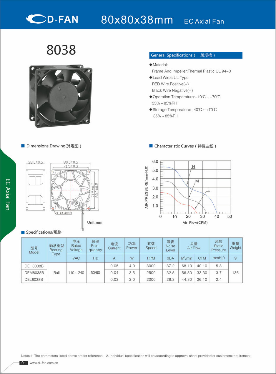 EC轴流风扇-8038曲线外观图
